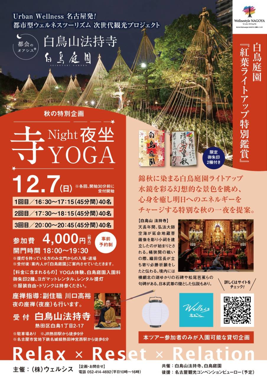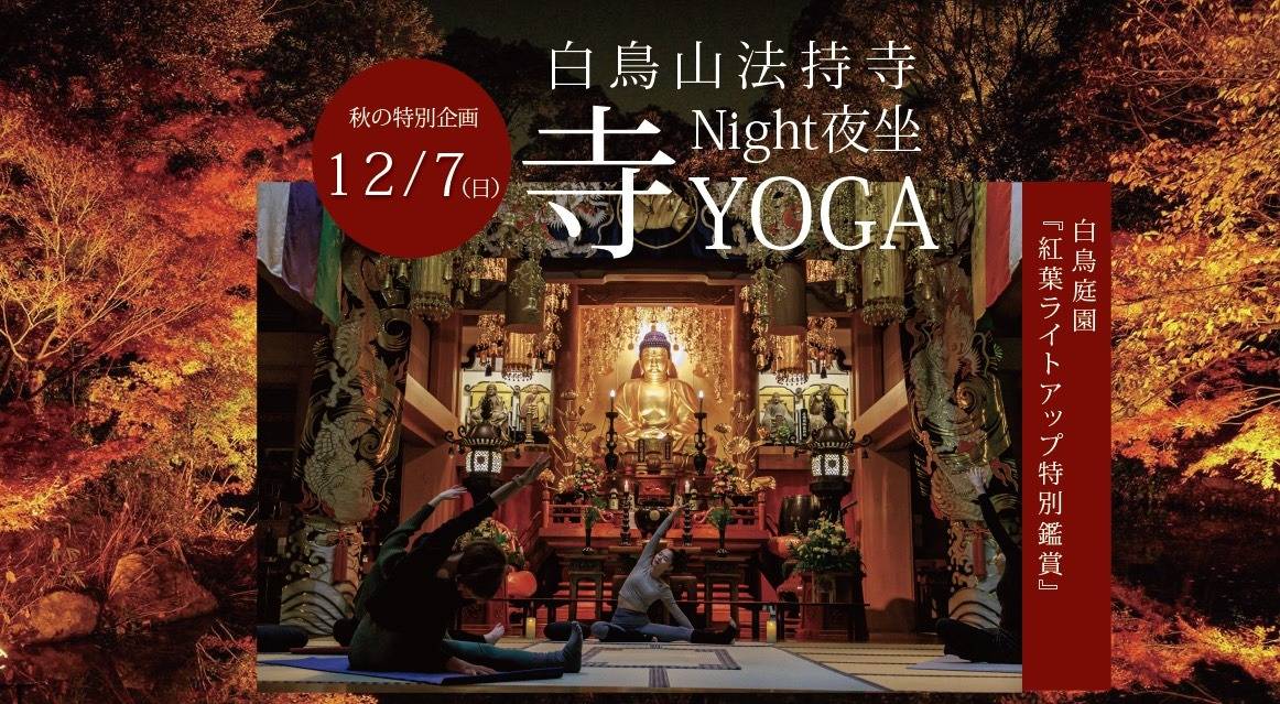 秋の特別企画 都会のオアシス®︎ 白鳥山法持寺 『Night 夜坐 寺YOGA』x白鳥庭園 『紅葉ライトアップ貸切鑑賞』 限定『御朱印』 付き