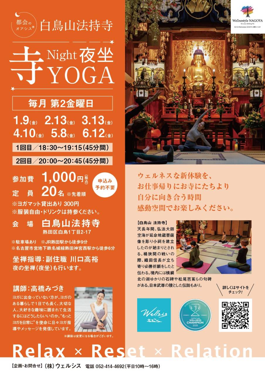 “白鳥山法持寺”にて開催される「Night夜坐 寺YOGA」は日常の喧騒から解放され、心と身体を整え解放するウェルネスなイベント。